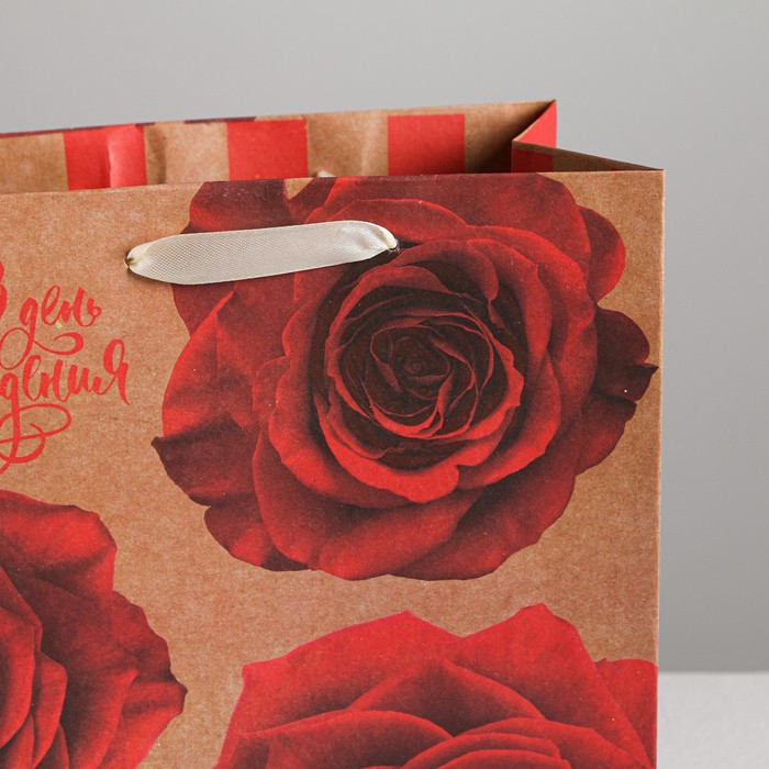 Пакет крафтовый вертикальный «В День Рождения!», ML 23 × 27 × 11,5 см