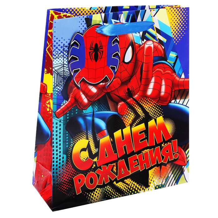 Пакет ламинат вертикальный "С Днем Рождения", Человек-Паук, 23х 27 см, + мини-открытка