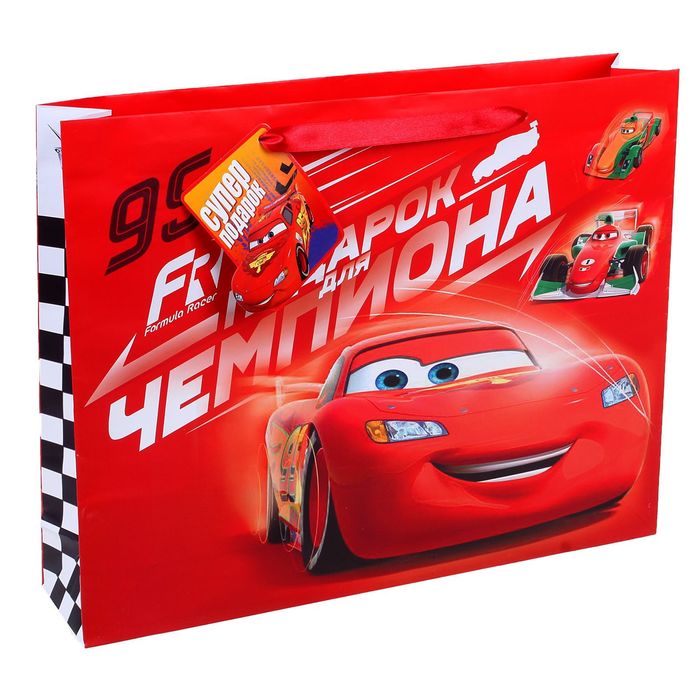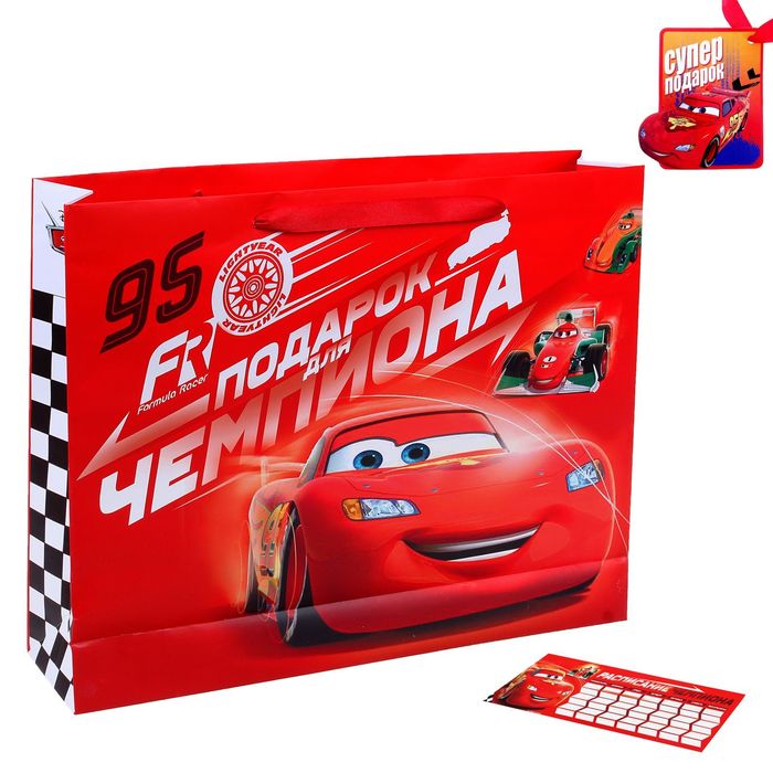 Пакет ламинированный горизонтальный "Подарок чемпиона", Тачки, 31 х 40 см, + мини-открытка, расписание