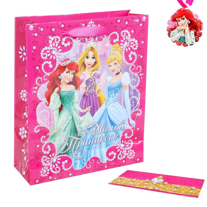 Пакет ламинированный вертикальный "Милой Принцессе", Принцессы, 23 х 27 см, + мини-открытка, бумажная корона