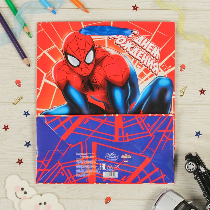 Пакет ламинированный вертикальный "С Днем рождения!", Человек-паук, 23 х 27 х 11.5 см