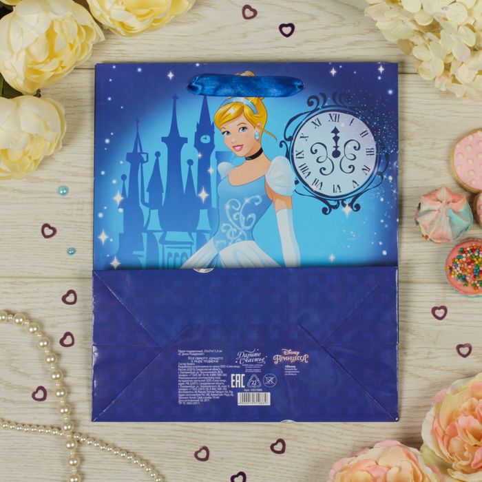 Пакет ламинированный вертикальный "С Днем Рождения!", Принцесса: Золушка, 18 х 23 х 10 см