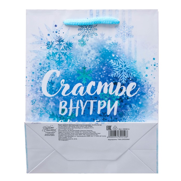 Пакет ламинированный вертикальный «Счастье внутри», 12 × 15 × 5,5 см