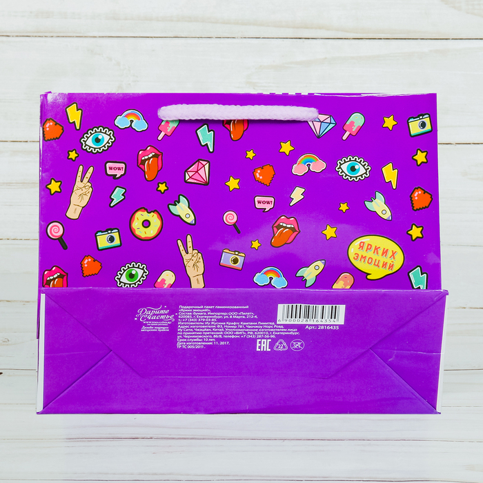 Любой подарок начинается с упаковки. Что может быть трогательнее и волшебнее, чем ритуал разворачивания полученного презента. И именно оригинальная, со вкусом выбранная упаковка выделит ваш подарок из массы других. Она продемонстрирует самые тёплые чувства к виновнику торжества и создаст сказочную атмосферу праздника. Пакет ламинированный вертикальный «Ярких эмоций!», S 15 × 12 × 5,5 см — это то, что вы искали.