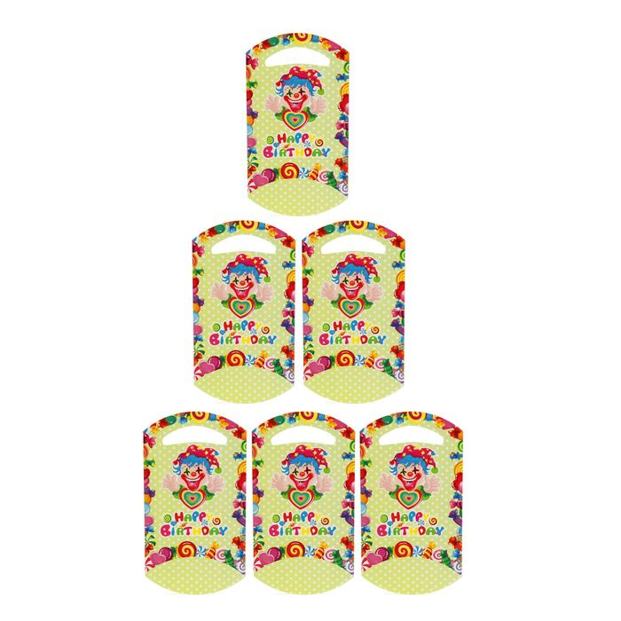Пакет подарочный 14*24 см "Клоун" с сердцем (набор 6 шт)