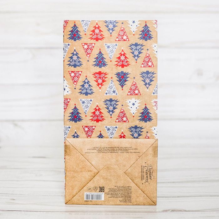 Пакет подарочный без ручек «Ёлки», 10 × 19,5 × 7 см