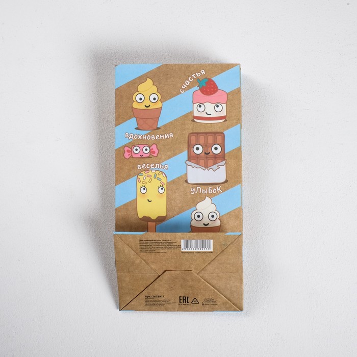 Пакет подарочный без ручек «Веселые сладости», 10 х 19,3 х 7 см