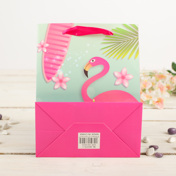 Пакет подарочный "Фламинго", розовый, 30 х 12 х 42 см