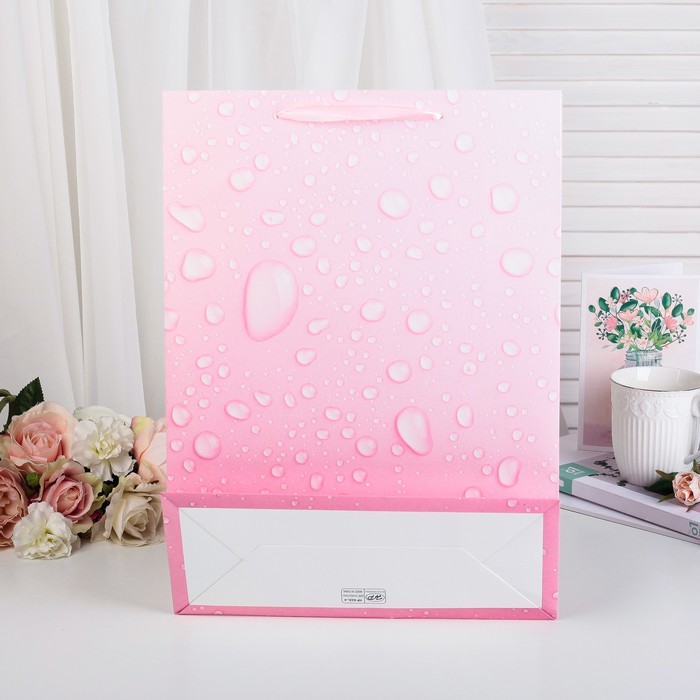 Пакет подарочный "Капли", розовый, люкс, 31 х 12 х 42 см