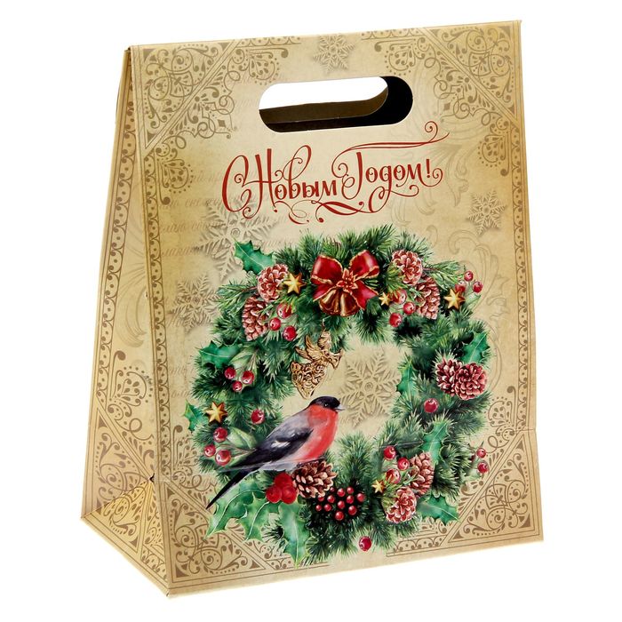 Пакет подарочный «Новогодний венок», 18 × 23 × 10 см