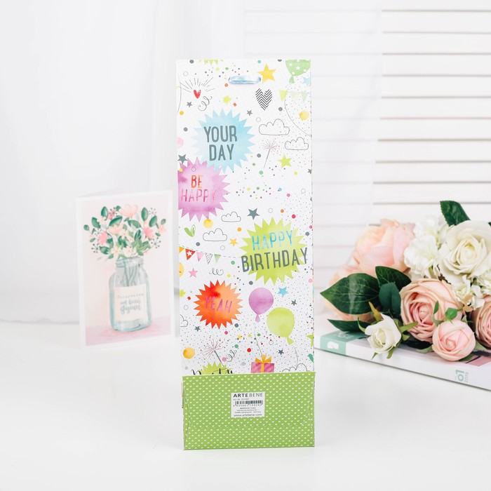 Пакет подарочный под бутылку, 12 х 8 х 35 см