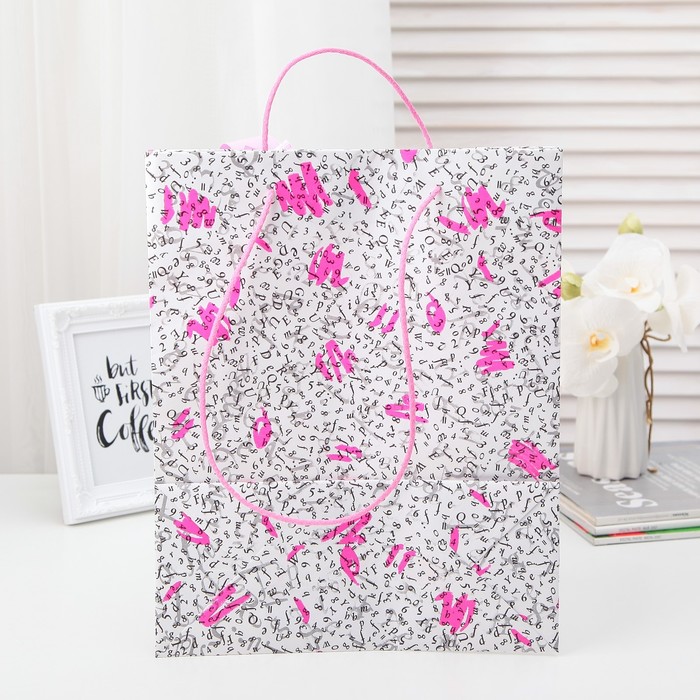 Пакет подарочный с бантом, "Письмо", розовый, 35 х 27 х 12 см