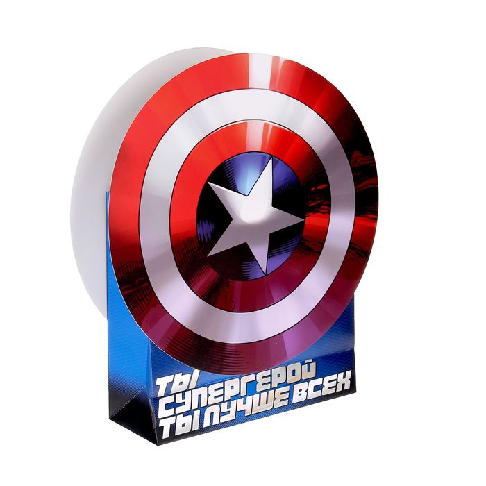 Пакет подарочный с фигурной ручкой "Ты супергерой", Команда Мстители, Капитан Америка