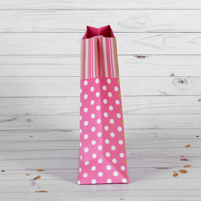 Пакет подарочный "Золотой горошек", цвет розовый, люкс, 18 х 8 х 23 см