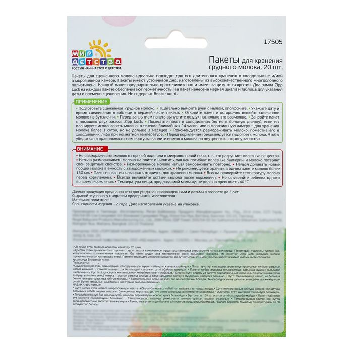 Пакеты для хранения грудного молока, 150 мл, 20 шт.