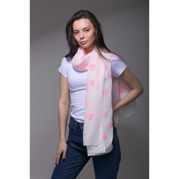 Палантин Этель "Сердечки", размер 70 х 180 см, вид 2, цвет белый/розовый