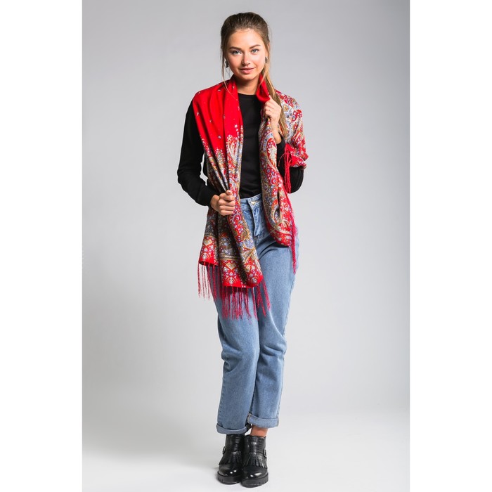 Палантин многоцветный с бахромой "Этель", размер 160х65 см, цвет пунцовый — выбор стильных людей. Вещь изготовлена из качественных и безопасных материалов, а над дизайном работала команда настоящих профессионалов.