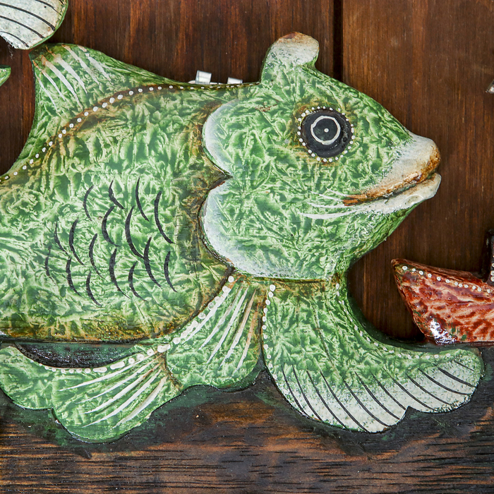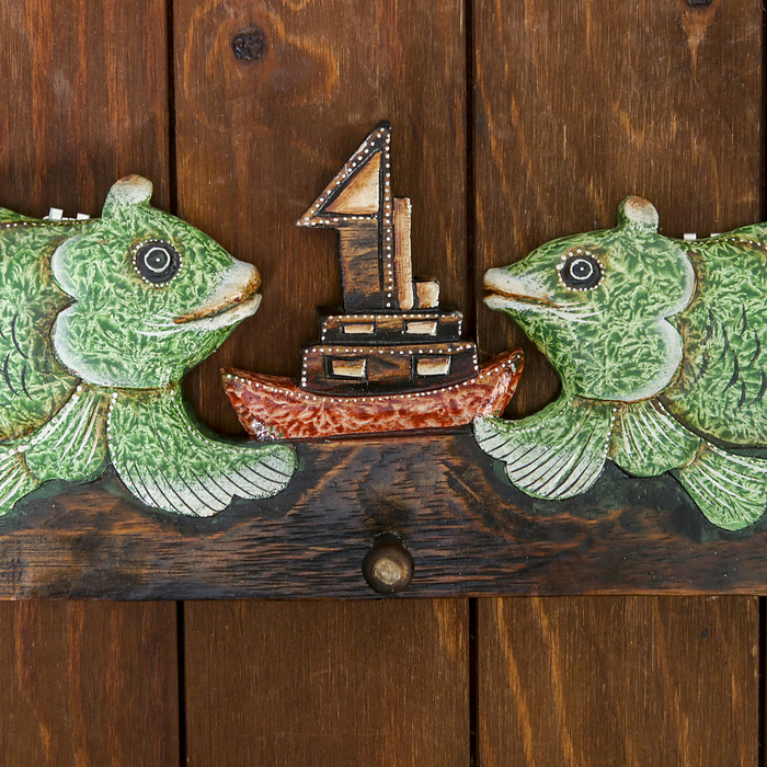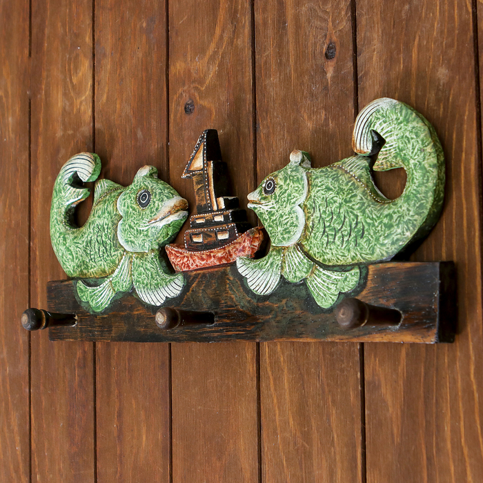 Панно настенное вешалка "Две рыбки с корабликом" зеленые 40х15 см