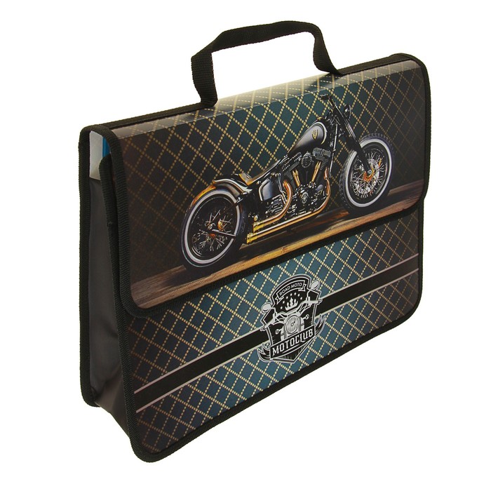 Папка с ручками пластиковая на липучке А4, 335x235х55 мм , Road moto