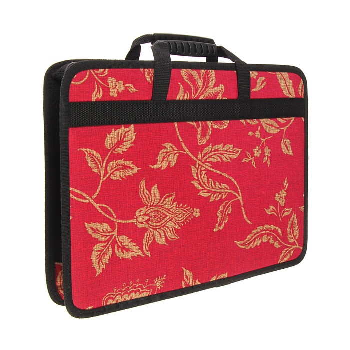 Папка с ручками текстиль А4 50мм 330*240 Канцбург 2С13 "Тихвин" 2139143 Зол узоры кр.фон поможет организовать ваше рабочее пространство и время. Востребованные предметы в удобной упаковке будут всегда под рукой в нужный момент.