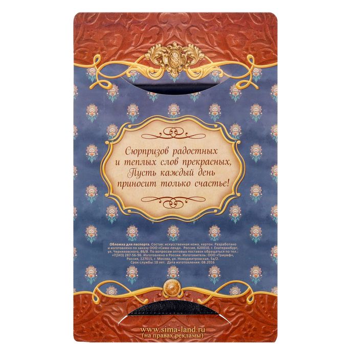 Обложка произведена в России и изготовлена из качественных материалов. Модный дизайн и эксклюзивное тиснение на внешней стороне делают такой аксессуар беспроигрышным подарком себе или родным.