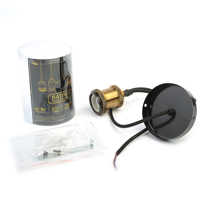 Винтажный патрон служит прекрасным обрамлением для лампы. Плетёный провод позволяет подвесить изделие в любом помещении. Данная модель не требует дополнительных затрат на плафоны — в сочетании с ретро-лампой она станет отличным дополнением любого интерьера.