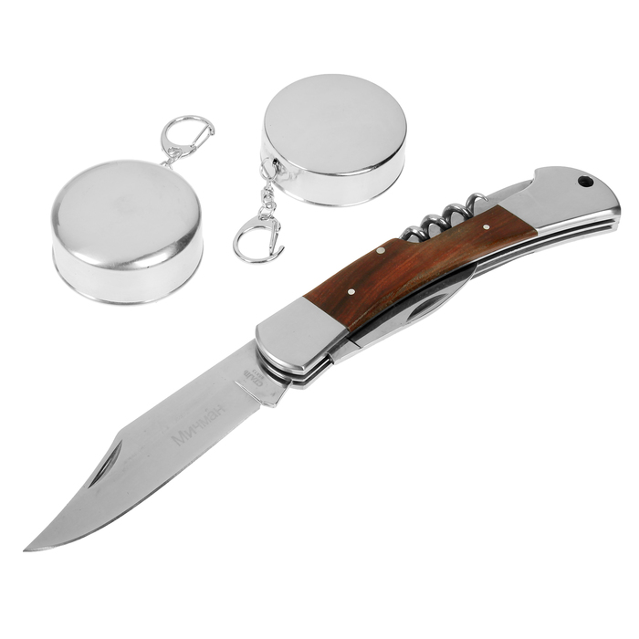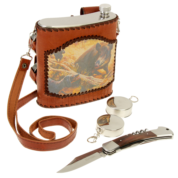 Павловская фляжка для охотника "Комфорт", 1 л, микс картинок, в наборе 3 предмета