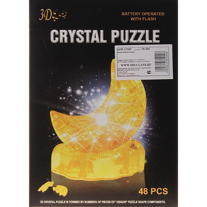 Пазл 3D кристаллический, "Месяц" 48 деталей, световые эффекты, работает от батареек, МИКС