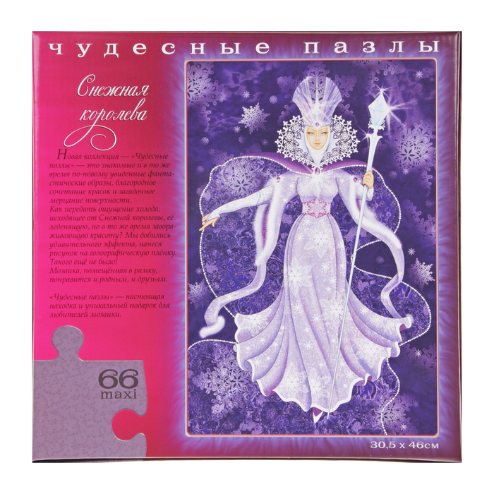 Пазл представляет собой игру-головоломку, в которой необходимо составить картинку из большого количества фрагментов. Сборка такой мозаики не потеряла свою популярность благодаря разнообразию её видов и изображений. Пазл "Чудесные пазлы", Снежная королева поможет с пользой провести досуг, а также поспособствует развитию цветового восприятия, логического мышления и мелкой моторики.