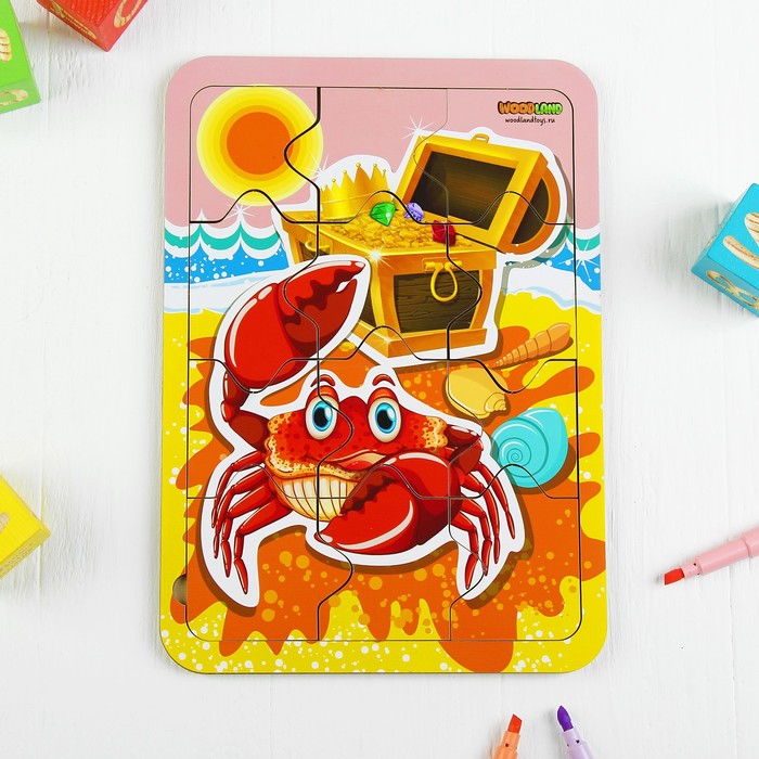 Пазл представляет собой игру-головоломку, в которой необходимо составить картинку из большого количества фрагментов. Сборка такой мозаики не потеряла свою популярность благодаря разнообразию её видов и изображений. Пазл деревянный простой "Краб" поможет с пользой провести досуг, а также поспособствует развитию цветового восприятия, логического мышления и мелкой моторики.
