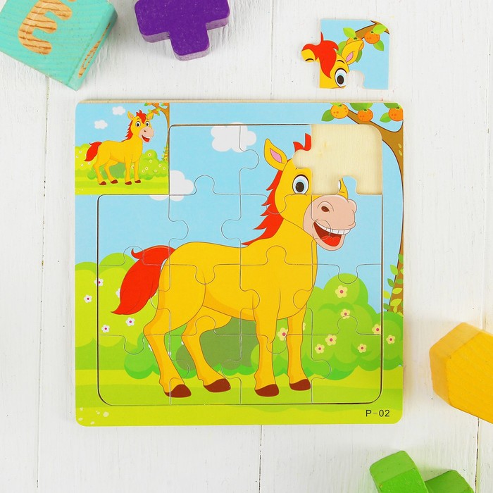 Пазл представляет собой игру-головоломку, в которой необходимо составить картинку из большого количества фрагментов. Сборка такой мозаики не потеряла свою популярность благодаря разнообразию её видов и изображений. Пазл малый с картинкой "Лошадка" поможет с пользой провести досуг, а также поспособствует развитию цветового восприятия, логического мышления и мелкой моторики.