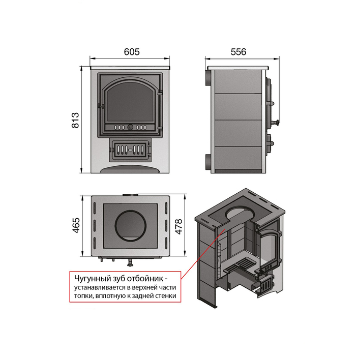 Печь-камин Везувий ПК-01 (205) со стеклом с плитой красный 12 кВт, , шт