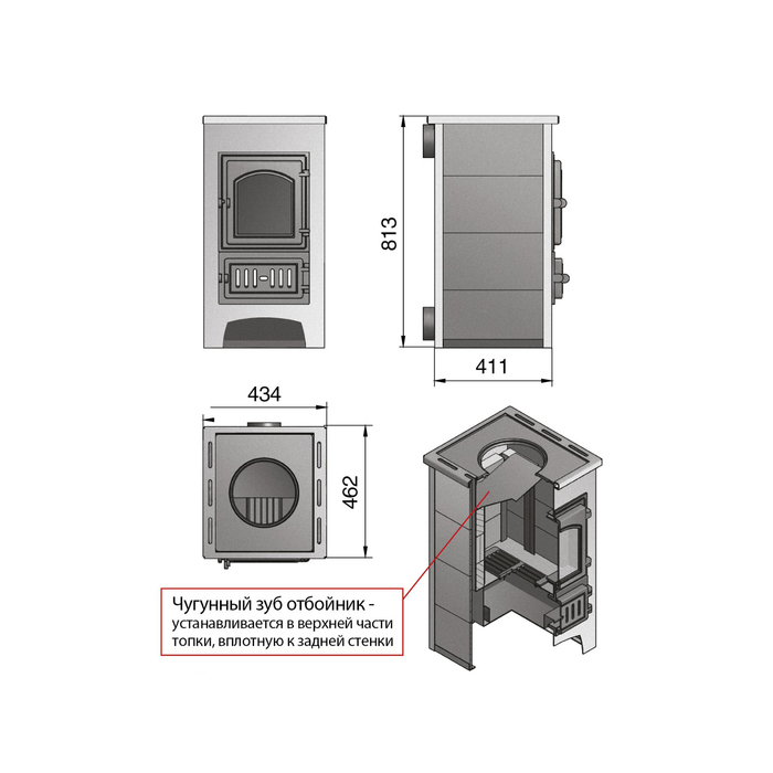 Печь-камин Везувий ПК-01 (270) со стеклом с плитой бежевый 9 кВт, , шт