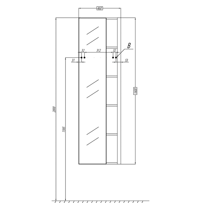 Размер (Ш х В х Г): 460 х 1600 х 321 мм.