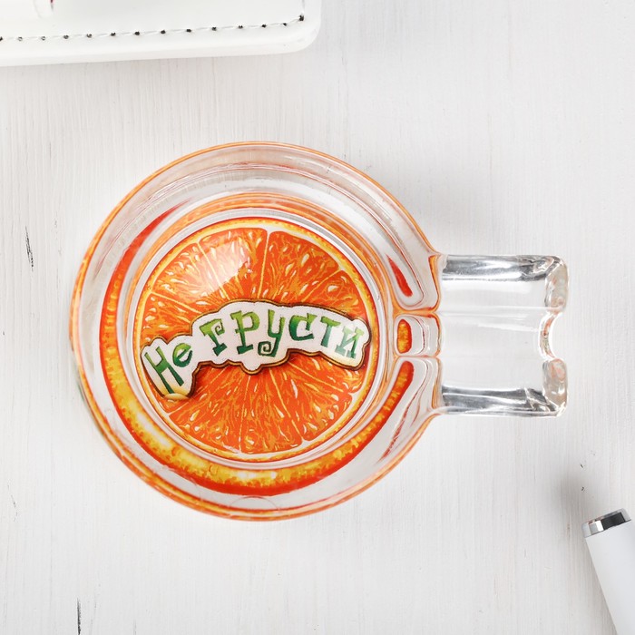 Пепельница c отливкой под сигарету "Не грусти" выполнена из прочного качественного стекла и упакована в оригинальную яркую коробку.