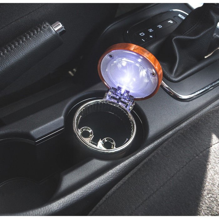 Пепельница для авто с крышкой "Lipin r" золотая, подсветка, 8х10 см