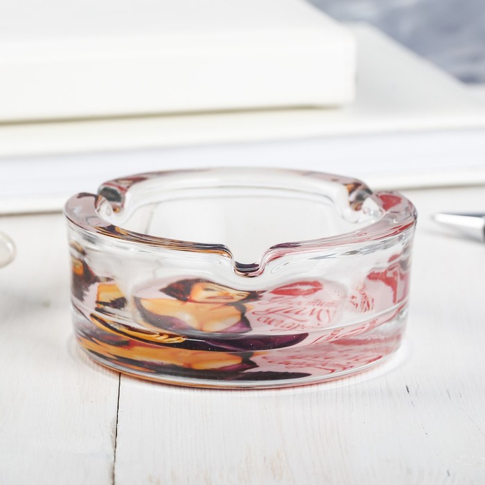 Пепельница "Угостите даму сигареткой" выполнена из прочного качественного стекла и упакована в оригинальную яркую коробку. Диаметр пепельницы – 8 см.