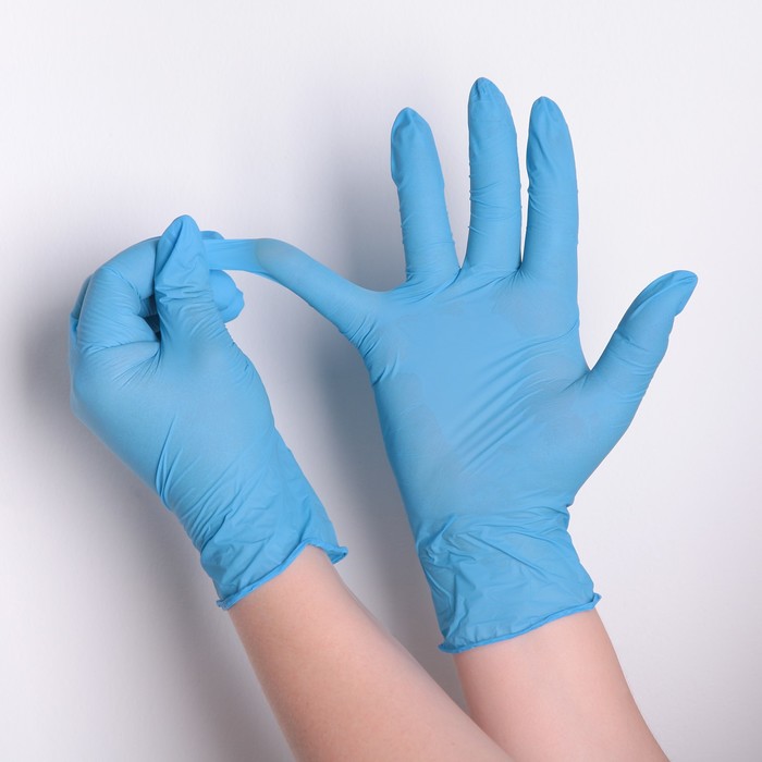 Перчатки хозяйственные универсальные усиленные нитриловые, размер M, 50 пар, цвет голубой