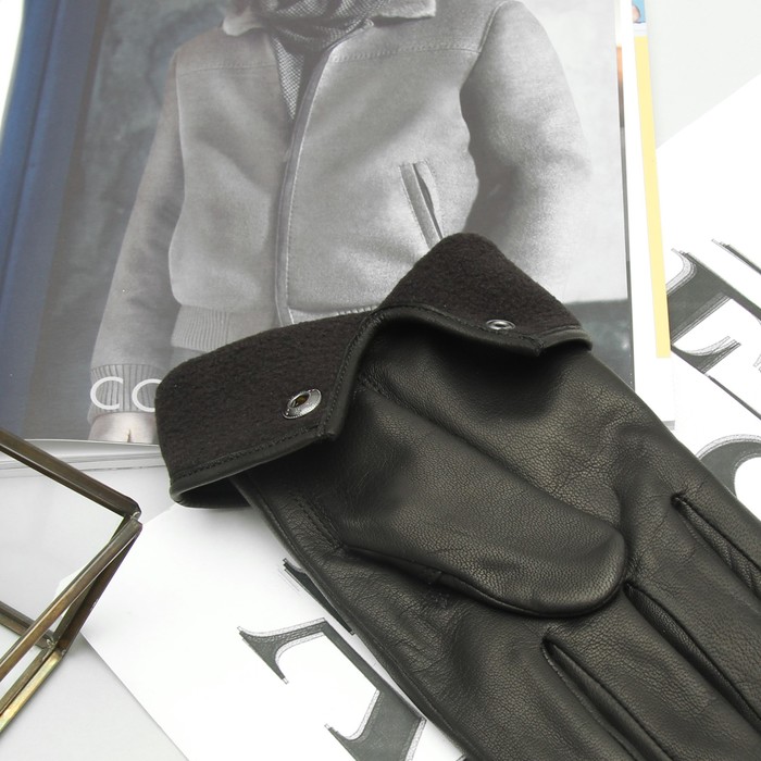 Перчатки мужские, размер 23, кожа козы, подклад флис, цвет чёрный