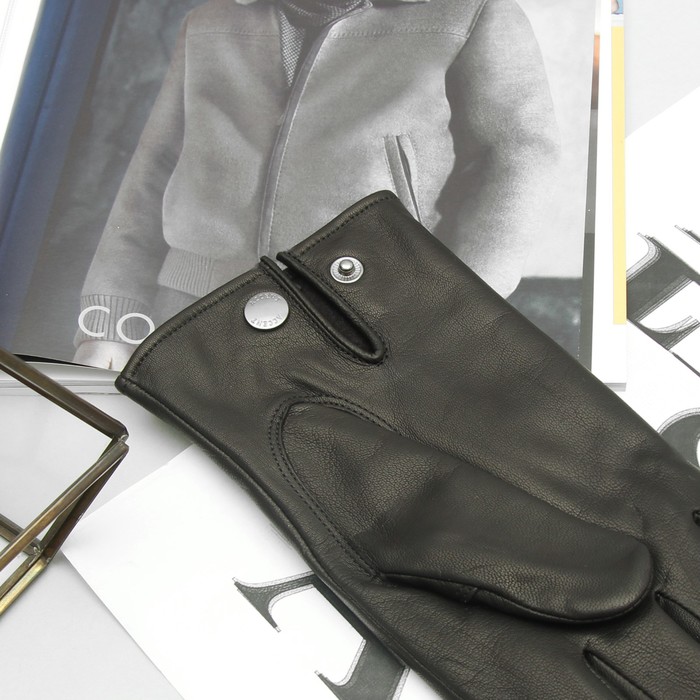 Перчатки мужские, размер 24, кожа козы, подклад флис, цвет чёрный