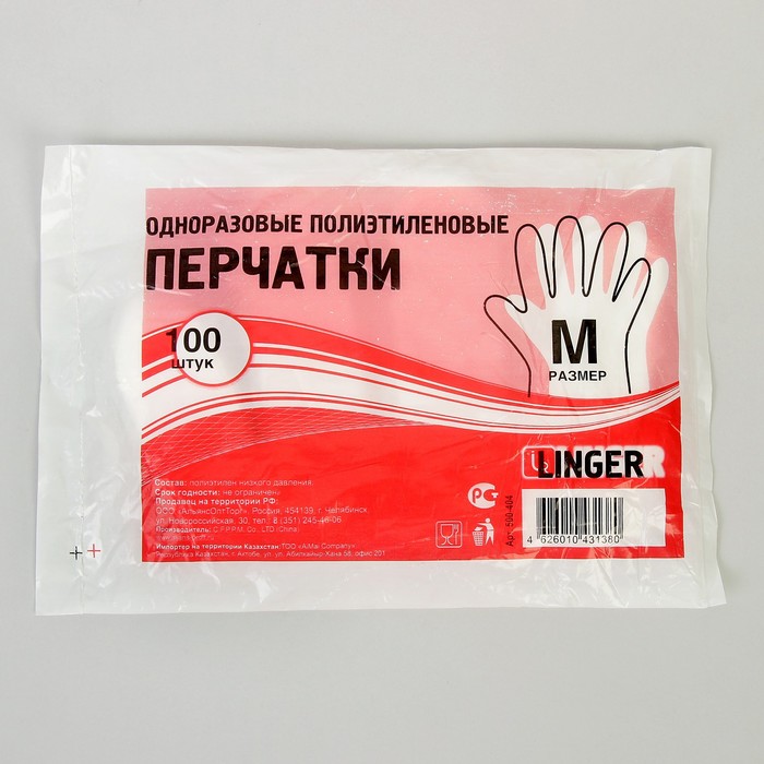 Перчатки одноразовые п/эт M 0.4 г 100 шт/уп