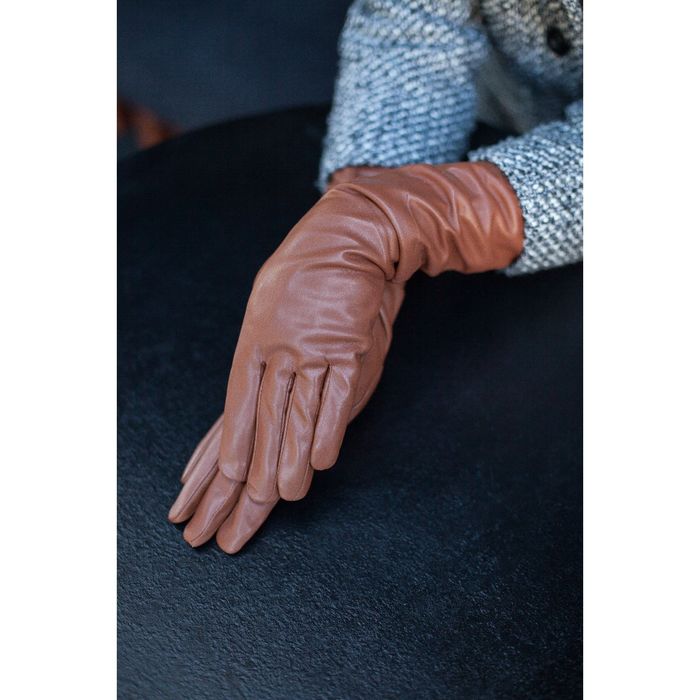Перчатки женские, длинные, размер 7.5, с подкладом, цвет рыжий