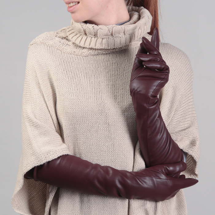 Перчатки женские, длинные, размер 7, с подкладом, цвет бордовый