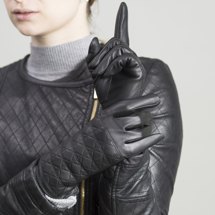 Перчатки женские, размер 6.5, с подкладом, цвет чёрный