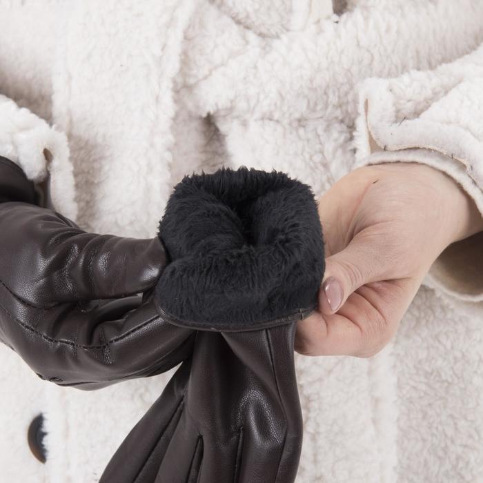 Перчатки женские, размер 6.5, с подкладом, цвет коричневый