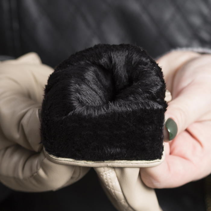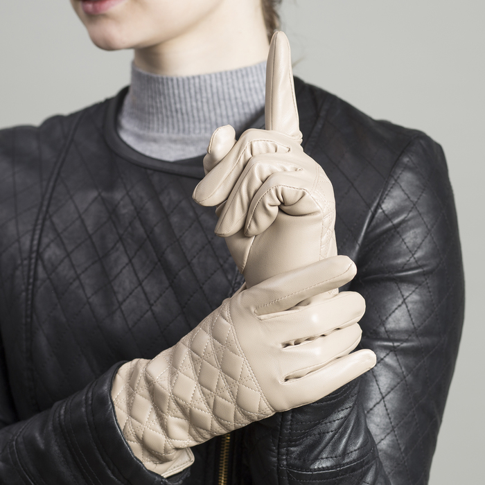 Перчатки женские, размер 7.5, с подкладом, цвет бежевый
