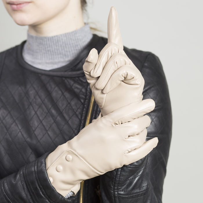 Перчатки женские, размер 8, с подкладом, цвет бежевый