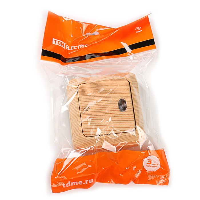 Переключатель на 2 направления 1-кл. открытой установки с подсветкой IP20 10А, сосна "Ладога 31709