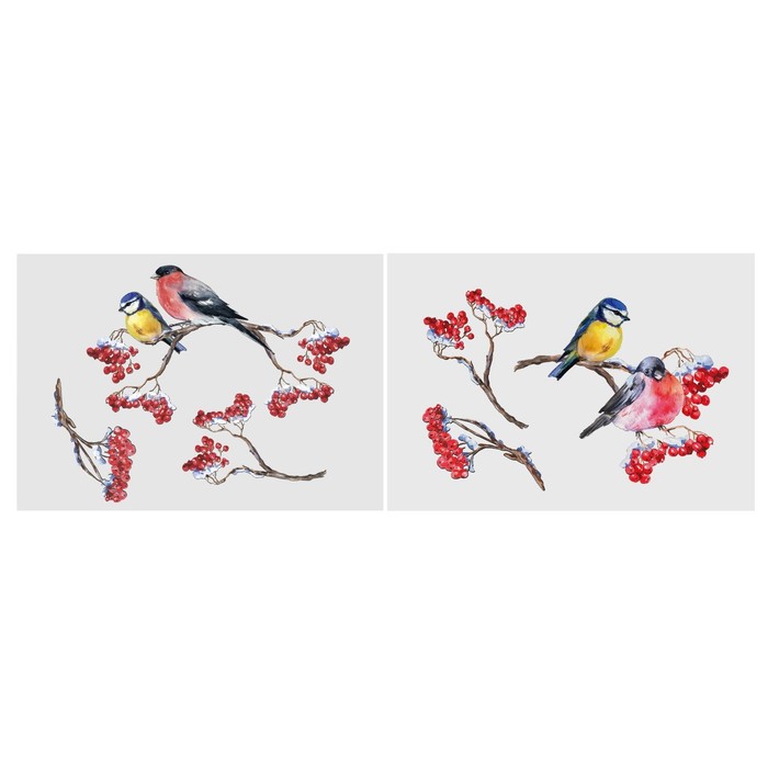 Переводки на посуду (холодная деколь) «Зимние снегири», 12 × 14 см