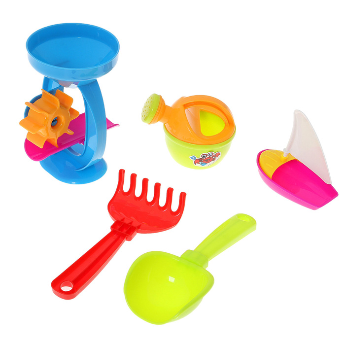 Песочный набор 5 предметов: мельница, лейка, грабли, совок, кораблик, цвета МИКС